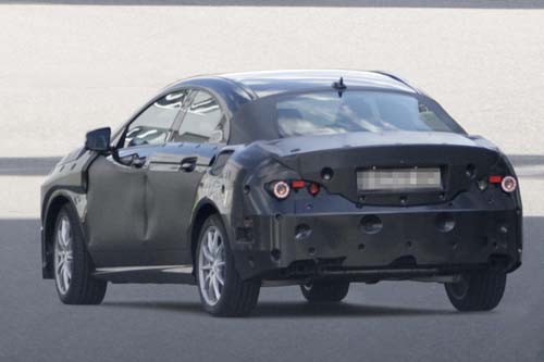 雖然距離預定上市的2013/2014年還有一段時程,因此偽裝車輛的全車上下仍包覆著讓人難以辨識的厚重偽裝,甚至車頭的水箱護罩與頭燈造型似乎還故意導入類似對手車款的相關特徵,試圖藉此混淆大多數路人的耳目。但我們身經百戰、見多識廣的海外狗仔團隊又豈是省油的燈,馬上就從M.Benz 品牌家族特色的車外後視鏡、成功辨識出其真實的品牌身分。間諜照片當中的車身尺碼與胎圈配置雖然並不算大,但是從車頂B柱一直往後延伸至C柱與行李廂部位的流線下滑線條,更可讓人再次確認Baby CLS所獨具的流線四門Coupe身分。