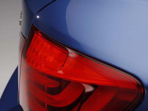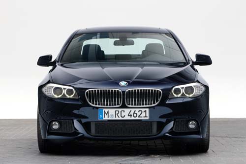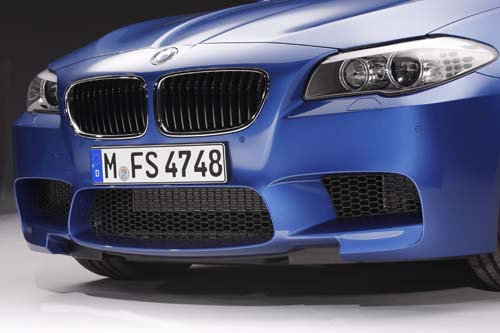 想成為速度飛快的高性能跑車,低風阻的流線外型是第一要件,但基礎架構源自5系列四門房車的M5其實並不具備上述的條件,這時解決的辦法就是靠重新設計的空力套件彌補先天不足,而成效就是讓新M5的試車手在極速305km/h時還能夠輕鬆的喝杯咖啡。相較於5系列或選配M Sports Package的頂級550i,忠實延續Concept M5概念的新M5看起來霸氣十足,前保桿的架構與E92 M3類似,以突出的中央進氣口為主(水箱散熱),兩側進氣口為輔(煞車與機油冷卻器),而加大的迎風面積也看出這具V8雙渦輪增壓引擎對散熱及進氣量的高度需求,兩側往下突出的導角則著重於高速時的下壓力展現。