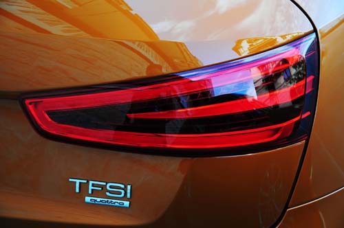 在產品推出初期,Audi僅提供兩種動力給予Q3的買家選擇,分別是2.0 TDI與2.0 TFSI,其中2.0 TFSI另外細分出兩種不同的動力規格,分別輸出170hp與211hp,其中170hp的版本搭配前輪驅動與六速手排,作為Q3的入門車型,根據Audi方面表示,由於暫時僅有手排配置,台灣的消費者可能暫時還無緣見到此車。2.0 TFSI引擎是十分熟悉的動力來源,最大輸出為211hp/30.6kgm,比較有趣的反而是2.0 TDI柴油引擎,這具柴油引擎的動力輸出達177hp/38.8kgm,極高的扭力輸出出現在1750~2500rpm之間,對於經常需要荷重的SUV車款來說是個相當適合的組合,而且2.0 TDI引擎轉化在性能數據上亦有相當水準的演出,搭載七速S-Tronic變速箱的車型0~100km/h加速8.2秒,極速則為212km/h。若是偏重SUV中Sport方面的買家,2.0 TFSI則是較為適合的選擇,雖然扭力輸出較小,不過卻擁有0~100km/h加速6.9秒,極速230km/h的實力,如此的性能數據其實頗為優秀,與A3 Sportback 2.0 TFSI Quattro的6.7秒、236km/h相比,就可以看出Q3在動力方面的表現其實已經接近一般掀背車的水準。