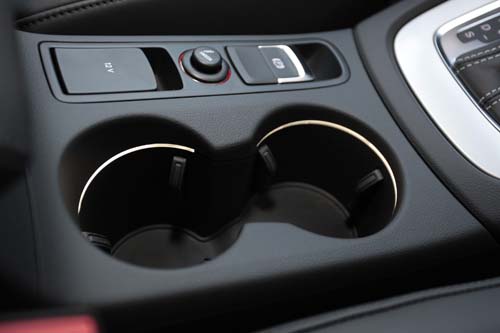 | 電子手煞車節省了不少中央鞍座的空間,餘下的部份裝上雙杯架、點煙器與12V電源插孔。 |