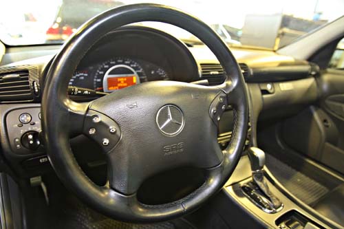 | 車室內,多功能的四幅方向盤則與一般W203車型大同小異。 |