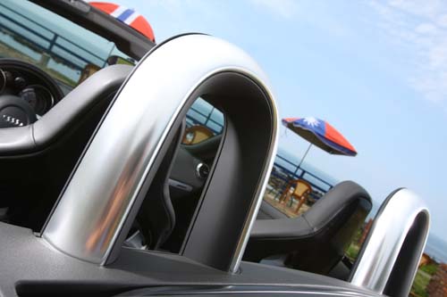 | 安裝於座位後方的防滾桿乃是敞篷車的重要安全配備之一,電鍍外殼的安排則帶有幾分復古風味。 |