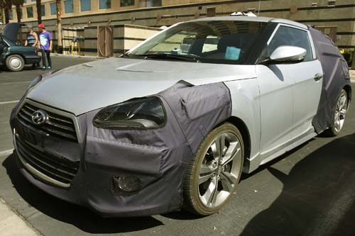 Hyundai很大方的沒有在Veloster Turbo測試車上蓋滿討人厭的偽裝布,僅是意思性遮一下告訴大家測試車的身份。比起一般版本,這部Veloster Turbo的前視造型幾乎徹底變身,全新設計的大型水箱罩與氣壩顯然是為了滿足導入新鮮空氣,滿足引擎吐納與散熱所需,連帶使得頭燈、保桿造型也得跟著一起升級,量產之後開在路上讓人能輕易分辨誰是羊、誰是狼!此外,為呼應小鋼砲的本質,Veloster Turbo還有搶眼的空力套件輔助,包含側裙與大型雙中出排氣管等配置來強化視覺深度,引擎系統預計會是Gamma 1.6升缸內直噴渦輪引擎,210hp的最大馬力輸出還可享有與一般車型相似的油耗表現,但我們還是比較期待搭載在Sonata上的2.0升缸內直噴渦輪引擎,274hp的最大馬力更是嗆辣,Veloster Turbo預計將在2012年的底特律車展正式發表。