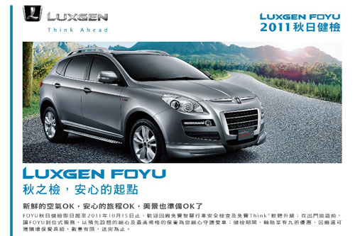「LUXGEN FOYU秋日健檢」 即日起至10月15日全面展開
