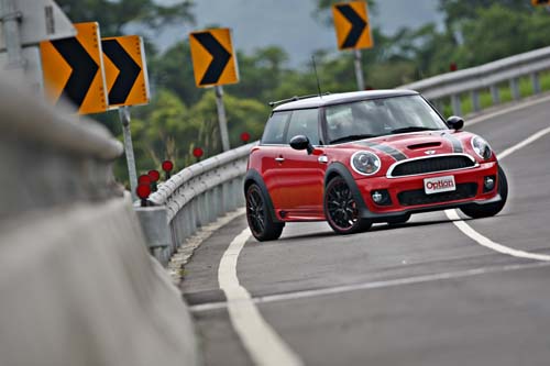 相較於標準版Mini Cooper S,此次Mini Cooper S JCW會影響性能感受的主要重點就在於輪胎及煞車系統,輪胎尺寸從205/45/17升級為Pirelli P-Zero的205/40/18,而煞車系統則換上JCW製作的前對向四活塞煞車卡鉗及直徑316mm的通風碟,後煞車則是JCW單活塞卡鉗配280mm碟盤,過彎穩定性及制動力均有明顯改善。低扁平比的跑胎強化了轉向的循跡性與指向性,路面回饋的訊息清晰,方向盤所發出的轉向指令也更明確,讓駕駛者的信心大增並敢用更快的速度過彎,相對也讓這具1.6升渦輪增壓引擎有了更廣泛的發揮空間,1600rpm即爆發24.5kgm的扭力讓加速出彎時機提早許多,在超壓狀態下甚至可產生26.5kgm的瞬間扭力輸出,讓它面對山路間的連續彎道與爬坡皆顯得輕鬆自如。強化的JCW煞車系統結合18吋跑胎更強大的抓地力,讓人對184匹馬力的收放更加自在,不會因為過快的速度而興奮過了頭,輕踩煞車便可產生漸進且強大的制動力,讓Mini Cooper S JCW提供更精準的速度及路線控制,感覺更像是一部Go-Kart賽車。