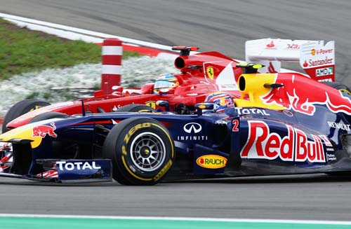 認真看一下數字,車手積分榜上的S.Vettel確實一枝獨秀,領先自己的隊友M.Webber都達85分之譜,後者和L.Hamilton及F.Alonso總共只差4分,再落後11分的J.Button亦可算是這個集團(這四人順位常常在洗牌),接下來的F.Massa前不著村、後不著店,「穩守」在第6,從他開始往後都是陪跑份子了(同理,從Ferrari開始往後的車隊,也不必奢望車隊冠軍)。