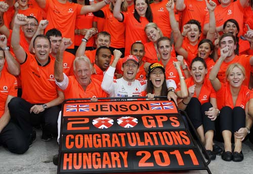 | 匈牙利站是J.Button(前排中)F1首勝之地,今年在此歡慶第200場比賽,也以個人今年第二勝作收。 |