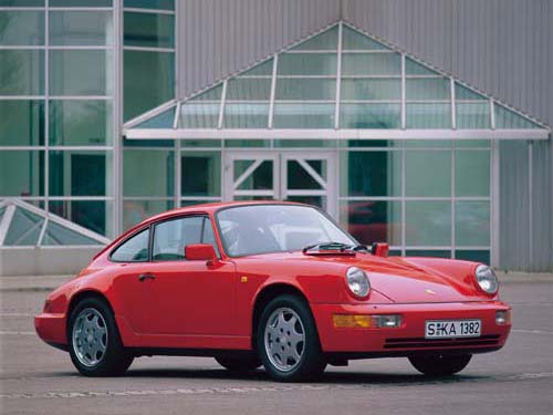 | 第3代911(車型代號964)生產週期1989~1993(圖片車型為1990年份911 Carrera 2 Coupe 3.6)引擎型式 3.6升氣冷式水平對臥六缸最大馬力 250hp/6100rpm極速 260km/h |