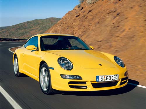 | 第6代911(車型代號997)生產週期2005~2011(圖片車型為2006年份911 Carrera 3.6 Coupe)引擎型式 3.6升(Carrera)/3.8升(Carrera S)水冷式水平對臥六缸最大馬力 325hp/6800rpm(Carrera);355hp/6600rpm(Carrera S)極速 285km/h(Carrera);293km/h(Carrera S) |