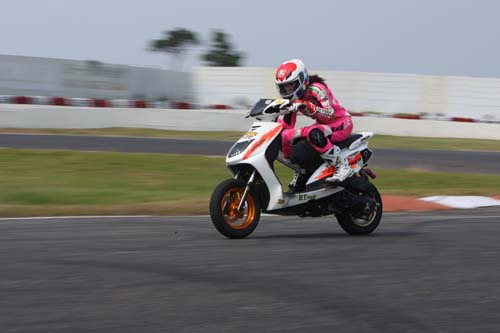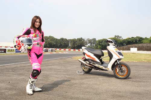 相信許多OP讀者對Vita的面孔不會感到陌生,而穿上防摔衣的Vita有別於一般賽車手的騰騰殺氣,反倒是展現出了青春洋溢的陽光氣息,但只要一騎上戰駒卻又彷彿變了個人似的,油門一拜、逢彎殺彎,如果不是戴著安全帽又穿著粉紅色的防摔衣,一般人可能都會把她誤認成是男生吧!