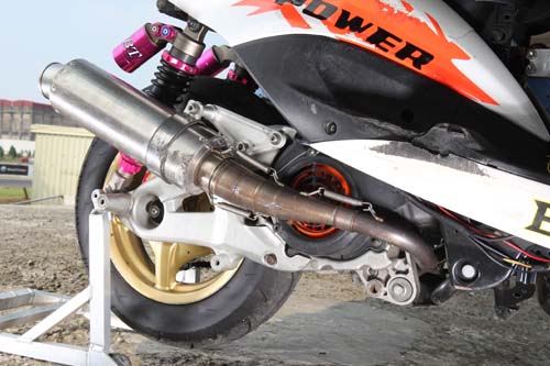 | 純手工製作的全段排氣管,完全依據比賽時所需要的輸出曲線來量身打造。 |