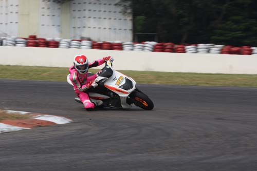 | 只要一騎上戰駒卻又彷彿變了個人似的,油門一拜、逢彎殺灣,如果不是戴著安全帽又穿著粉紅色的防摔衣,一般人可能都會把她誤認成是男生吧! |