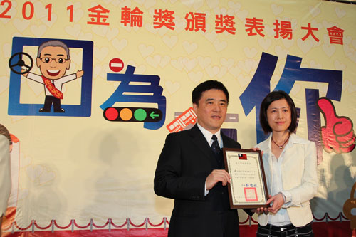 100年度金輪獎頒獎典禮於9月22日下午舉行,並由市長郝龍斌親自頒獎表揚對促進交通安全等議題有貢獻的公司、團體、學校及個人。當天頒發的獎項包括:促進交通安全團體獎、優良職業汽車駕駛人、績優義交、優良計程車合作社、優良交通安全教育績優學校、績優導護教師及志工等。