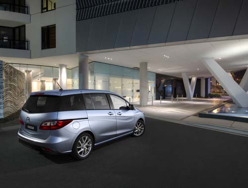在動力系統部分,New Mazda 5預料將會沿用現行的MZR 2.0L直四汽油引擎,最大輸出亦維持148hp/19.2kgm不變,搭配的變速系統則與血緣相近的Mazda 3同樣,由四速手自排升級為五速手自排的配置。此外,也加入ECO節能指示燈號設計,若還能同步導入與日規車型相同的i-Stop引擎怠速自動啟閉系統,對於油耗表現提升應有一定程度的幫助。New Mazda 5沿用與Mazda 6、Mazda 3相同的現行家族設計風格,除了顯眼的大型五角水箱護罩以外,車側的波浪式線條更是一大特色。內裝鋪陳則與Mazda 3十分相近,包括雙筒式儀表總成、三幅式方向盤與中控台頂端的液晶資訊幕等;座椅配置延續國內現行車款的6+1設計,同樣擁有靈活的空間運用機能,而「+1」的第二排中間座位也經過修改,加長、加厚的座墊應可使乘坐舒適度提升。