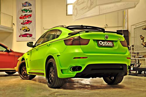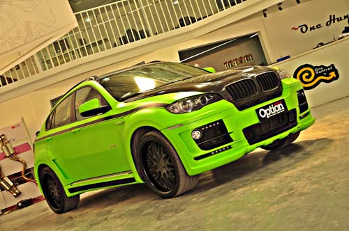 | 換上碳纖維引擎後,這輛綠色X6頓時在視覺上產生了非常明顯的線條感。 |