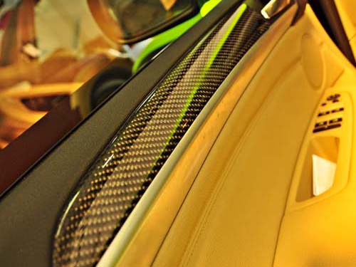 | 兩輛車的內裝都使用了大量的碳纖維材質,無論是門板、中控檯甚至是方向盤。 |