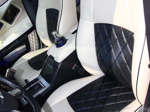 接著打開車門,座椅皮面、腳踏墊與車門飾板等,全都以換成黑白兩色為主調的色彩佈置,四個門板上還分別裝上兩部7吋液晶螢幕,再搭配「手槍型排檔桿」、中央扶手上的「伏特加酒瓶」,與「Hit-Hop舞曲」,坐進車內就有如在Pub的包廂內,相信此時若是夜晚,絢麗的燈光效果將令人更加心炫神迷。值得一提,既然打算向Rolls-Royce看齊,其經典的對開式後車門怎能放過呢?於是車主花了將近一個月的時間,將此設計真正實現在這部車上,雖不是第一次看到對開式車門,不過在後車門開啟的瞬間,連筆者都可感受到與眾不同的尊榮感受,透過此車門開啟設計,讓這部車的改裝完整度達90%以上!而既然有酷到爆表的外觀,沒有一組相對應的底盤改裝來襯托怎行呢!據經營汽車貿易的車主表示:這部車的底盤改裝需求並非在提高車輛操控性或駕御樂趣,而是著重在經過凹凸不平路面的彈跳反應,其突然壓過坑洞時的吸震能力,如此才能讓扁平比只有25%的超薄輪胎,與售價高達50多萬元的24吋電鍍旋轉鋁圈,能在處處不滿坑洞的台灣道路上全身而退,而經過考量最後決定採用Q度十足的氣壓式避震器來因應。而歷經長達半年以上使用時間的考驗,Air Force的這組氣壓避震器,確實能提供理想中的保護能力,且隨時可調整車身高低的設計,也讓自己假日時即使跟一堆義德超跑出遊,也毫不遜色,連一些路面落差較大的地形都能順利通過,相當稱職的扮演其角色,這點在採訪時順利大膽的經過鐵路平交道,就讓筆者印象相當深刻!