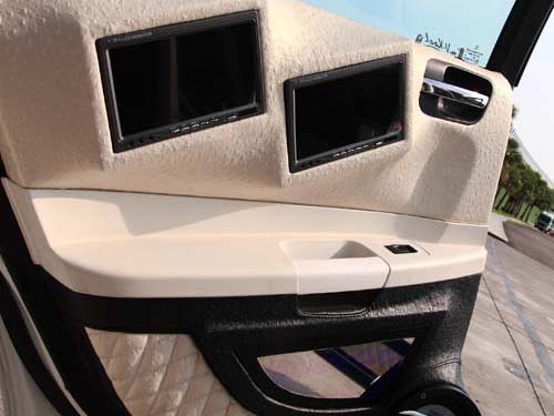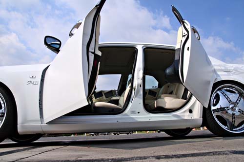 | 後車門的開啟方式同樣仿照Rolls-Royce經典的對開方式來改造,加上每個車門上都裝置兩部7吋液晶螢幕,動靜皆令人驚艷。 |