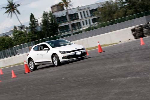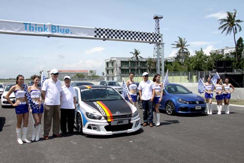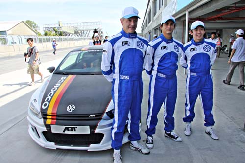 本次在大鵬灣國際賽道所舉辦的Think Blue藍色享樂科技活動,現場除了規劃出富有寓教娛樂的靜態節能展示區,為了讓全台各地前來參加的車主們能夠深刻體會VW車款所展現的高性能戰力,總代理太古標達分別請到Mark Williamson(澳洲)、Alex Yoong(馬來西亞)與Jeffrey Lee(台灣)等三位國際級車手,藉由本身豐富的參賽經驗與優異操控技巧的優勢下,能讓上千位熱血車主親自感受VW性能車款與賽道所撞擊出的迷人魅力。為了應付高達3200位以上的參與人次,原廠特別大手筆派出多達30部試乘車讓車主能夠有不同的體會,不過全場最受改裝車迷所矚目的莫過於Golf R、Golf GTI與Scirocco。新世代Golf車系中的性能霸主Golf R,在可爆發出270hp的2.0TSI引擎與四驅傳動系統輔助下,不僅能打破前驅設定無法突破400hp的馬力限制,對於後續性能提昇上似乎還有很大的進化空間。另外極受歡迎的Golf GTI也在ABT改裝套件加持下展現出性能風味,除了換上侵略性十足的空力外觀、胎圈、煞車與內裝,動力輸出經過ABT電腦程式重新撰寫後讓原廠210hp增加至260hp。雖然沒有達到想像中令人熱血沸騰的升級幅度,但是就原廠誠意來看早以大膽突破一般車廠不敢涉略的改裝領域,就這方面而言還是值得給予肯定。