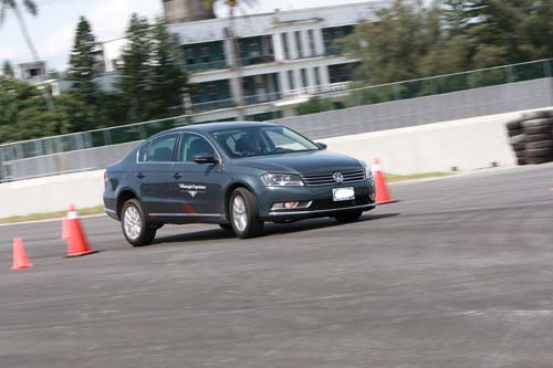 | 專業車手示範繞錐與緊急變換道的測試關卡,藉此除了展現出車輛操控性的優劣,對於車輛電子穩定系統的輔助效果也能立即突顯。 |