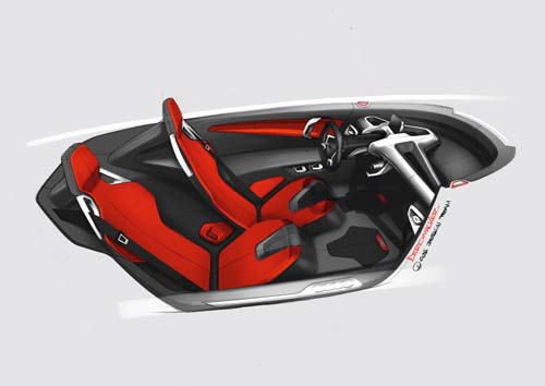 | 為了爭取空間,座位採用了非並排的設計,副手座看似與車艙底板整合,這種設計曾經出現在Lamborghini Sesto Elemento車上。 |
