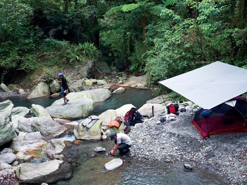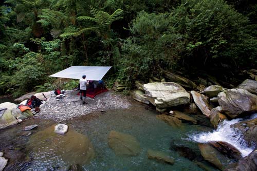 | 合流溪的溪床上很容易找到適合紮營的地點。 |