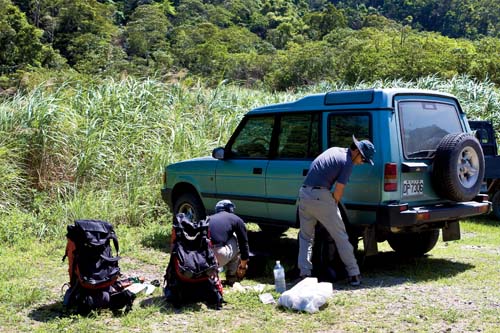 | 停車在開闊的林道上,整裝入山後,要5天後才回來了。 |