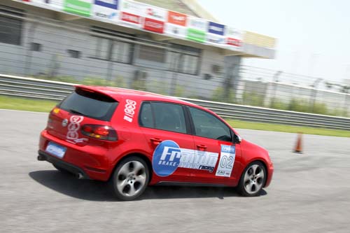 | 僅僅將Golf GTI前煞車系統改以Frando六活塞卡鉗與街道版來令片就讓制動效能較原廠大幅度提升。 |