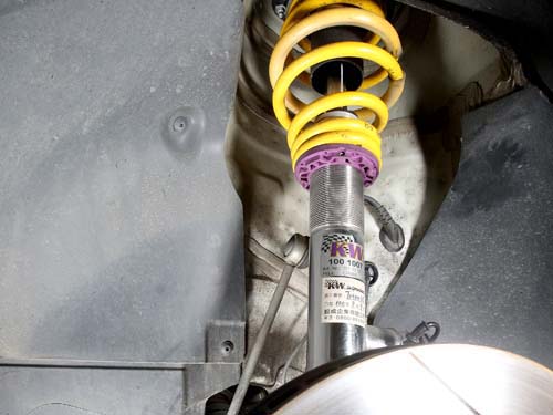 KW所製造的避震器,採用所謂「Inox line」的不鏽鋼製成,能確保極高的品質與耐用度,加上永久如新的外層處理,完美保護筒身使其不受侵蝕,同時依照阻尼軟硬與簧圈彈性係數,每一款KW避震器組都擁有前後獨立筒身可調功能,可將車高降低3.5~6.5公分,如此具有彈性的調整範圍是為了達成最理想的懸吊調校。KW避震器有相當多款式供玩家選擇,共有街道舒適版、街道運動版Variant 1、2、3、賽道競技版及三向可調競技版等6款。