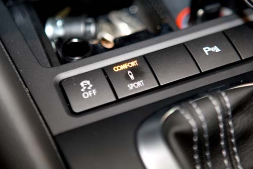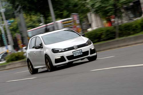 | 車主只要在車室中利用排檔桿前方的按鈕便可輕鬆改變避震器的軟硬度,方便的程度讓筆者也心動萬分!不過只適用於Golf R車款。 |