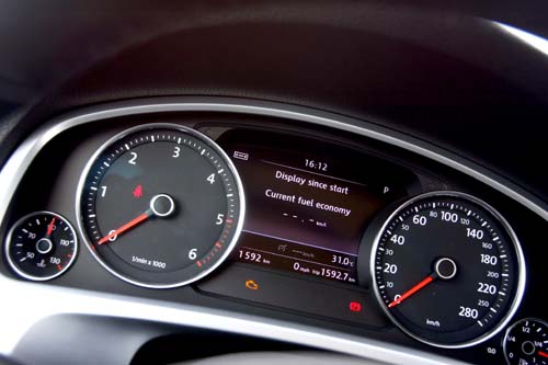 新世代Touareg一項最重要的修改是減輕車身重量。與上一代車型相比,新車的車重減輕了208公斤,風阻係數也由0.38降低至0.35;而在減輕重量之餘,車身剛性也提昇了5%。對於Touareg來說,透過減輕車重等方式達成節能目標,是非常重要的課題;當然除了減重外,換上更節能的動力系統亦是一大要務,新車的動力系統當然經過相當程度的修改,藉此以降低油耗。目前引進國內的Touareg車上搭載的是3.0 TDI柴油渦輪增壓引擎,最大動力輸出204hp/40.8kgm,除了搭配4Motion四輪驅動之外,變速箱換上全新開發的八速Tiptronic手自排變速箱。藉著全新的齒比安排,達成降低油耗的功效。根據VW所提供的資料顯示,八速Tiptronic變速箱的第七、八檔位採用超比檔設定,在巡航時可有效降低車輛油耗,第八檔的齒比較第六檔降低達34%,在巡航時可有效降低引擎轉速與油耗。