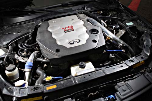 | VQ35DE本來就屬於高轉速取向的引擎,安裝渦輪增壓系統容易造成連桿強度不夠、引擎散熱不良、水溫飆高等問題。 |