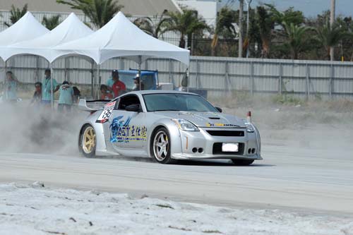| 在四月份的試辦賽中,亞仕德就曾率領多部車輛參賽,最引人注目的應該是這部VeilSide寬體式樣的雙渦輪350Z! |