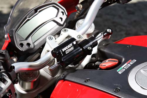 | 除了龍頭把手也更換上RIZOMA外,雅雅也為696安裝上防甩頭,可輔助女性騎士力氣較小在強烈震動的抑制能力。 |