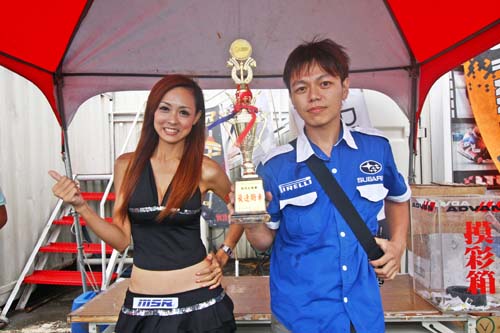 | 冠軍/59.591/陳幸雄/車號:18/車隊:KIDO/車型:Impreza/很高興!因為比了兩年終於在這次的Option盃最速街車賽讓我拿到冠軍了,其實車輛也沒有做什麼特別的調校,就是維持以往的設定,輪胎是用17吋的AD08,內裝也都為了輕量化的目的,所以將後座拆除並安裝防滾籠,所以能拿冠軍真的很高興! |