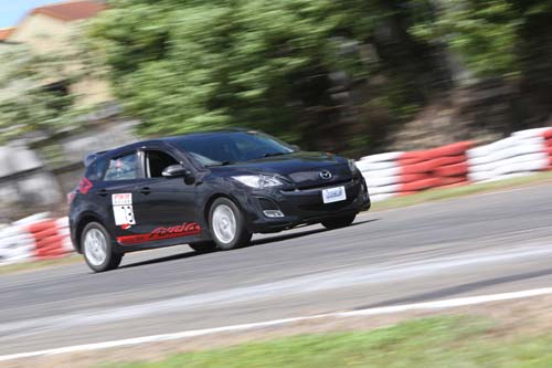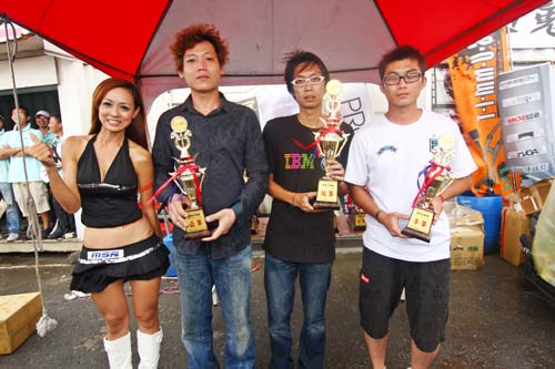 | 冠軍/1:04.510林耀揚/車號:74車隊:MCK-信佑汽車/車型:Mazda 3/動力部分幾乎是維持原廠設定,只換了MCK的排氣管,底盤則是全部交給Ruff處理,搭配17吋的595 RS-R,其實馬3原廠動力跑起來就很刺激了!雖然說成績不能跟喜美或硬皮鯊比較,但是以原廠馬3的角度來看,已經很滿意了。 |