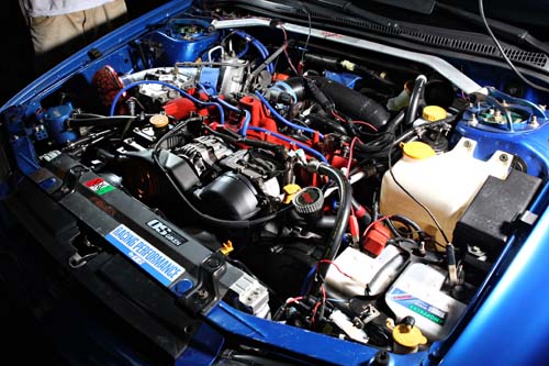| 引擎室內混雜的管路及配線,還有引擎電腦線組跨線,十足戰鬥氣息散發! |