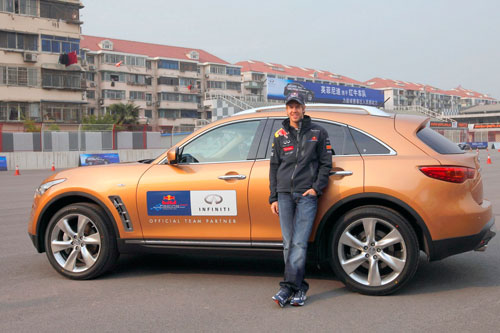 史上最年輕的冠軍車手Vettel,其平日即以FX作為平時的駕駛夥伴,在一般道路上,充分享受INFINITI的無限駕馭樂趣;今年F1上海賽事期間,Vettel更將INFINITI FX行駛於賽道上,以高超的技巧展現高速過彎及精準的操控,徹底發揮FX強大馬力及穩定的懸吊系統,讓在場觀眾驚呼不已。INFINITI甫推出的V-Spec冠軍特仕車款,即以”V”代表”Victory”與”Vettel”,搭載原廠套件,以彰顯Vettel的冠軍榮耀;再加上AVM「360度環景顯影系統」、Scratch Shield「刮痕自體修復烤漆」、「One touch電動尾門」與「HDD多媒體娛樂平台」等多項豪華科技配備,以優惠價格回饋欲享有F1馳騁快感的消費者。