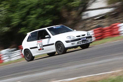 | SHADOW-ISC季軍 /1:01.682/周權一/車號:58/車隊:SHADOW-ISC/車型:Saxo說實在的我沒有為了比賽而去做什麼別的設定,就跟平常的時候一樣,261度的Hi-Cam、195/50R15的595 RS-R,但是有一點我一定要說,就是車真的太多了,一組二十幾台車,真的很難找到空檔做時間,一場下來大概只有2、3圈是用全力在跑。 |