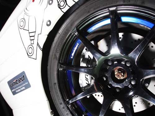 此外,足下部分使用Advan 17吋輕量化輪圈,搭配245/40ZR17 A048熱熔胎,大家一定覺淂很奇怪為什麼不是使用最新款的A050呢?其實A048雖然已經不對外販售,但日本橫濱還是持續小量生產以提供給許多車隊使用,而此胎是透過關係從日本廠隊所取得的庫存品。在制動方面,使用了自家品牌United前六後四活塞煞車系統,而這組煞車系統最大的優點在於高速制動的表現優異,同樣也適合高速賽道的使用。
