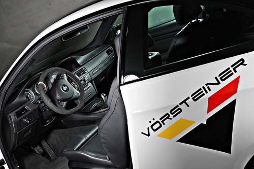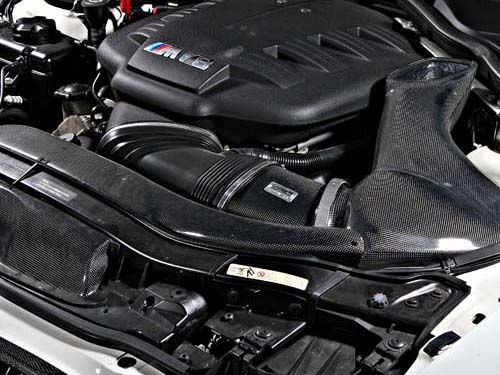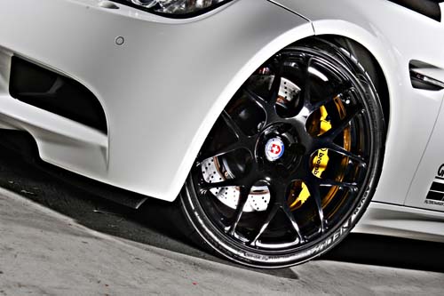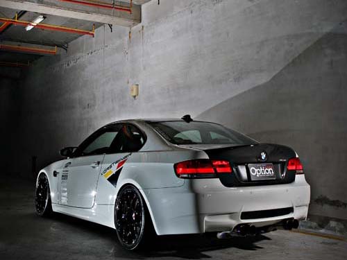 這輛白色E92 M3的改裝幅度其實並不大,S65B40引擎本體原廠就相當設定就緊繃,而在原8300rpm下可榨出420hp的最大輸出來看,E92 M3更是完美的高轉速高輸出自然進氣引擎。而車主也並未施以強制增壓來破壞原廠的美意,動力部分目前則是針對進排氣及ECU的改裝來提昇整體輸出,為了符合V8引擎的大排氣量,車主則是將原廠集氣箱廢除改採流量更大的Gruppe M碳纖維集氣箱,排氣管部分則是由日本訂購Amuse Ericsson專為E92 M3開發的鈦合金中尾段,70mm的口徑可保持低速時的爆發力,ECU部分則採用美國的TTP程式,以目前的配置來說最大輸出約可達450hp之譜。