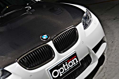 | E92 M3碩大的原廠氣壩就顯示出該車不凡的氣勢,左右兩旁的進風口更提供全油門時所需的冷空氣,另外車主為了更減輕車頭重量則是換上Vorsteiner的碳纖維引擎蓋,開孔的設計也可快速將引擎熱源排出,以維持性能表現。 |