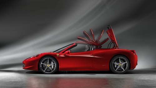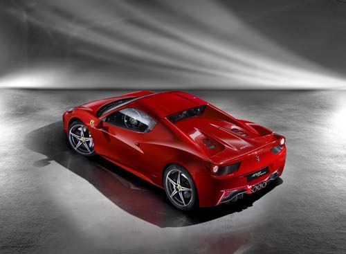 開篷後,兩座突出的獨立背脊營造出458 Spider極為強烈動感氛圍,即便受活動硬頂的影響,原本相當討人喜愛的透明引擎蓋被取消了,但新增的六個散熱口及導引氣流的渠道設計,反而提供更優異的空氣力學表現與散熱效能,甚至在開篷狀態下,座艙在車速達200km/h時依然保有舒適環境,行車氛圍完全不受氣流的影響。相較於雙門款的458 Italia,敞篷版458 Spider除了活動硬頂之外,動力、機械架構與配備並未有任何改變,引擎仍是那具可輸出570匹馬力的4.5升V8缸內直噴引擎與七速自手排,且車重因為只增加50公斤,對性能幾乎沒有造成影響,0~100km/h加速3.5秒的成績只比458 Italia多了0.1秒,極速為320km/h。