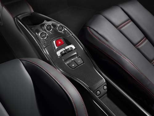 | 活動硬頂與後車窗的控制開關為458 Spider與雙門款內裝最主要的差異之處,拉上後窗可讓車艙在時 速200km/h以內可不受亂氣流影響。 |