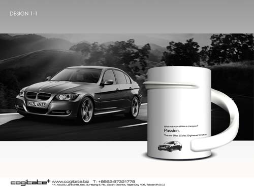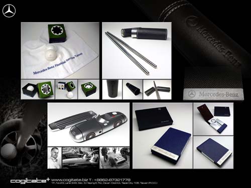 | 舉凡VW限量Polo Shirt & 球帽、BMW旋轉握把馬克杯、M.Benz皮革環保筷、Audi純白文具組與Porsche工具鉗組等精品,原來都是出自於Cogitate沅汰設計團隊之手。 |
