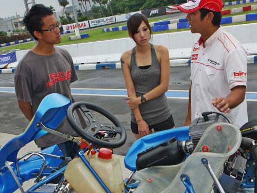 | 正式下場前教練詳細的解說競賽用卡丁車與一般Rental Kart的諸多相異之處。 |