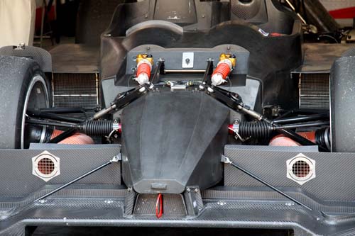 除了引擎進氣口位置正好位在駕駛左側之外,原來早期賽事規則中就是以雙座為標準,因此後來陸續發展出各式的單座方程式賽事,嚴格來說都算是利曼耐久賽衍生出來的徒子徒孫。雖然座艙設計是偏向於「右駕車」,但是採用Xtrac六速序列式變速箱基本上對於習慣左駕的房車車手並不會有過大影響,除了起步進檔需要踩離合器撥片進檔,後續檔位只需撥片即可進退檔,而駕駛前方的Magneti Marelli賽車儀錶則隨時提供引擎轉速、檔位、水溫、油壓、圈數、燃油剩餘量與換檔提示燈都一應俱全。另外碳纖維車體結構本身並未有額外金屬連結之處,在有限的空間之下所有方程式車輛都是維持水平懸吊系統與前後雙A臂連桿,尤其方向盤左右轉向角度不到30度的微幅轉角中卻能提供車輛極為精準的轉向。
