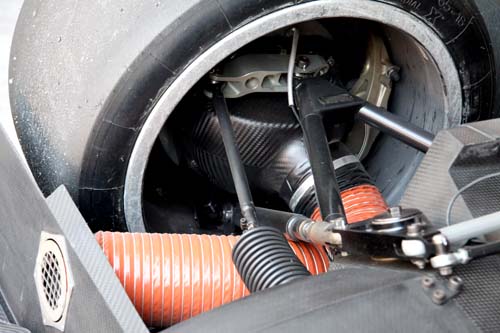 | 利用導風管直接將冷空氣導入碳纖維集氣罩中,藉此能夠將碟盤溫度快速降低以維持應有的制動效能。 |
