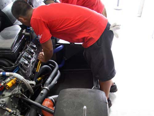 | Formula Le Mans工程師在每一位測試車手返回Pit區後,除了會立刻讀取測試數據之外,還會仔細檢查車輛是否有任何異常問題。 |