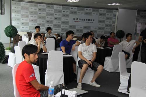 | 為了讓所有參與車手能夠有更好的測試成績,為此主辦方Oreca特別請來車隊當家車手張善祺分析各個彎道應注意事項與車速。 |